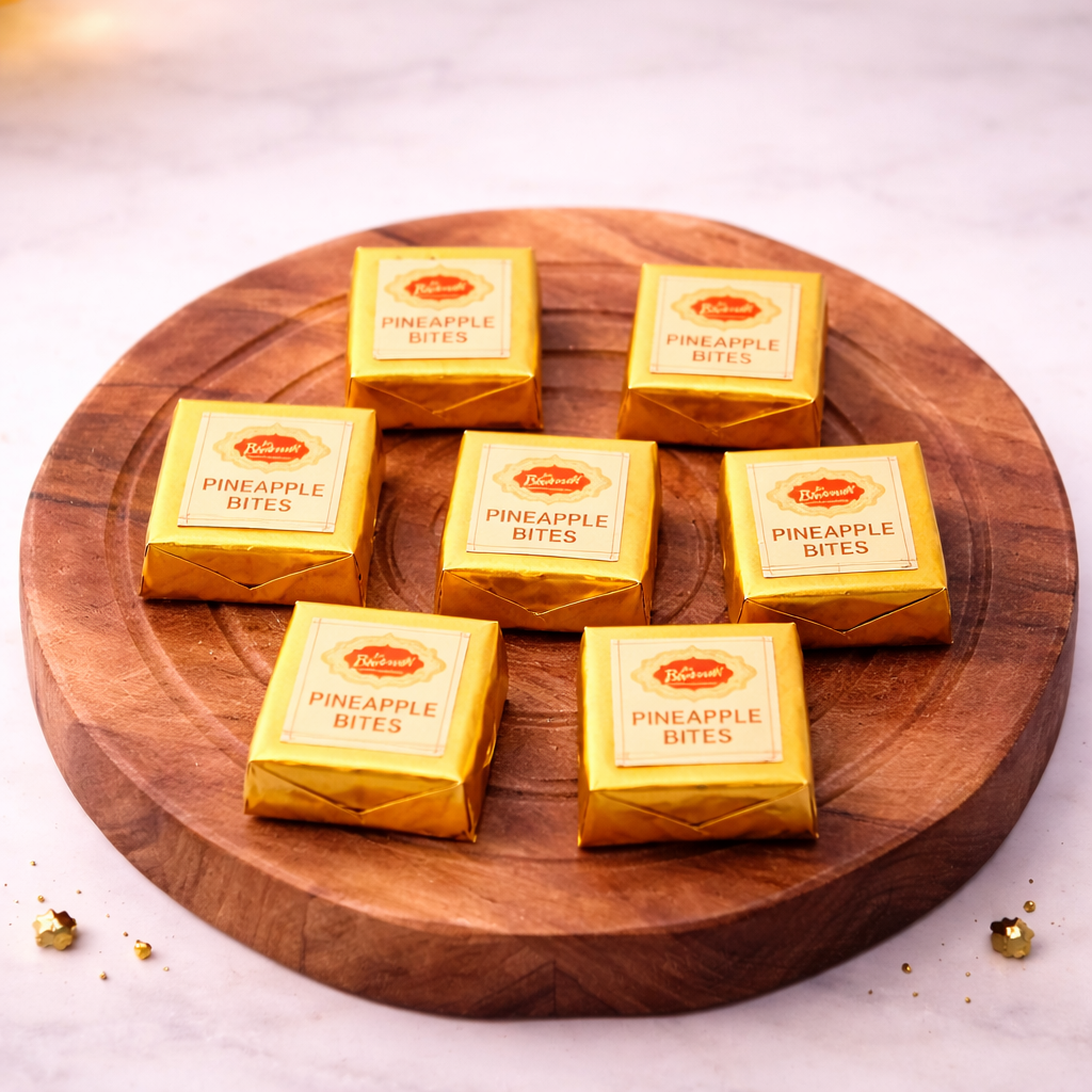 Savor the tropical sweetness of Pineapple Bites, a delightful treat made from juicy pineapple pieces coated in a subtle, sugary glaze. Each bite offers a burst of fruity flavor with a soft, melt-in-the-mouth texture, making it perfect for festive celebrations, gifting, or as a refreshing everyday indulgence.