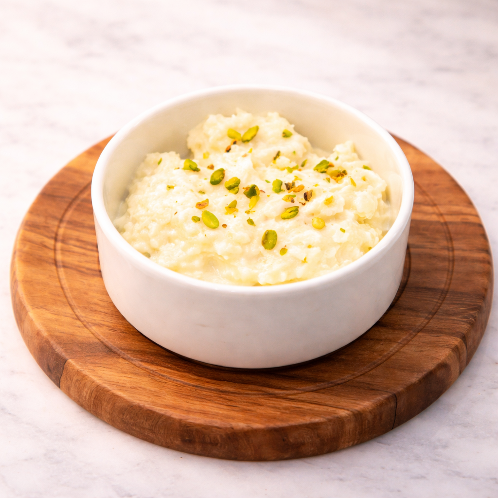 Indulge in the luxurious taste of Rabdi, a classic Indian dessert made by slowly simmering fresh milk until it becomes thick, creamy, and full of flavor. Delicately sweetened and flavored with cardamom, this rich dessert is often garnished with premium dry fruits, making it a perfect treat for festive occasions and special celebrations.